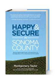 What does happiness mean to you? Best-selling author and wealth manager Montgomery Taylor’s newest book, Happy & Secure in Sonoma County, sets out to prove that finding it is a choice. That’s right, you can always choose to be happy, even during life’s most difficult turns. And look at it this way: You’ve already chosen to live in one of the most beautiful, bountiful places on the planet. You’re on your way.The book begins with seven chapters featuring personal stories from some of Taylor’s clients, each describing a unique set of triumphs, setbacks and goals. The stories are followed up with Taylor’s perspective, suggestions, thoughts, related resources and takeaways. The result is a personal-yet-productive approach toward resolving issues and obtaining happiness, not just financially, but emotionally as well.