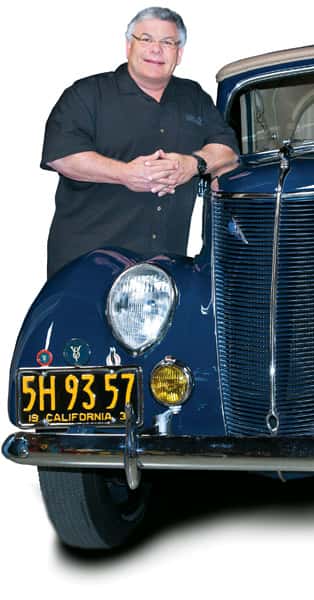 Collecting and restoring classic Ford cars. I love chasing them down and seeing them transformed. I love the beauty and artistry of the design of these cars through the years. [Friedman is pictured here with his prized 1937 Ford Club Cabriolet four-seater.]