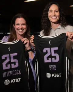 J Vineyards winemaker Nicole Hitchcock and WNBA legend Sue Bird celebrate the inaugural season of the Golden State Valkyries. [Photo from jwine.com]